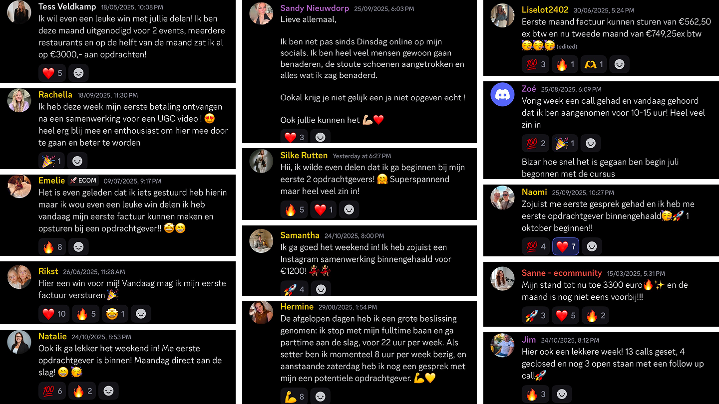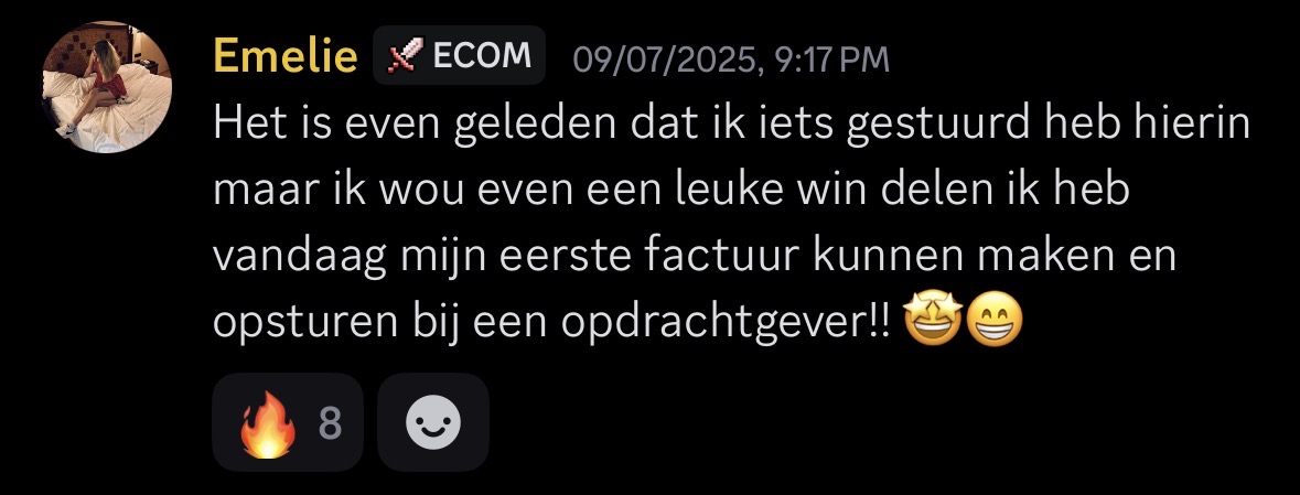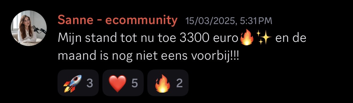 Mijn ervaring met Ecommunity is zeer positief. Ze bieden uitstekende begeleiding, een waardevolle Discord-community en een uitgebreid netwerk. Dankzij de nieuwe connecties die ik via dit traject heb gemaakt, boek ik nu geweldige resultaten.